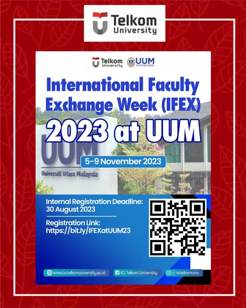 Telkom University lecturers who would like to participate in IFEX Week 2023 at UUM must register the internal selection step by making an online registration at https://bit.ly/IFEXatUUM23.