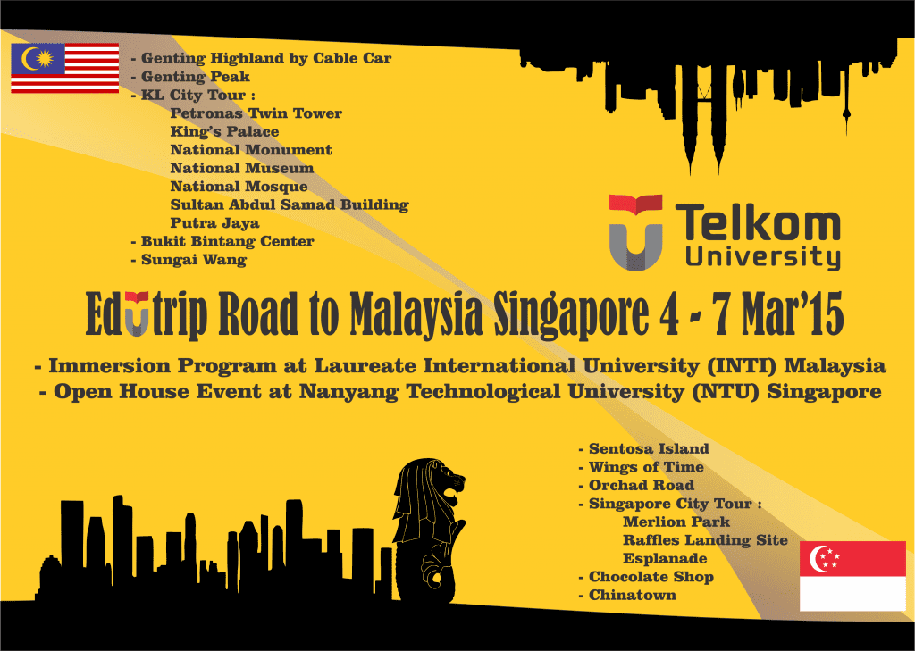 Edutrip is a program organized by International Office of Telkom University to improve global awareness and competitiveness of Telkom University students and staffs. The name Edutrip has a meaning of Educative trip and globalization, therefore the trip accommodates universities visit abroad.