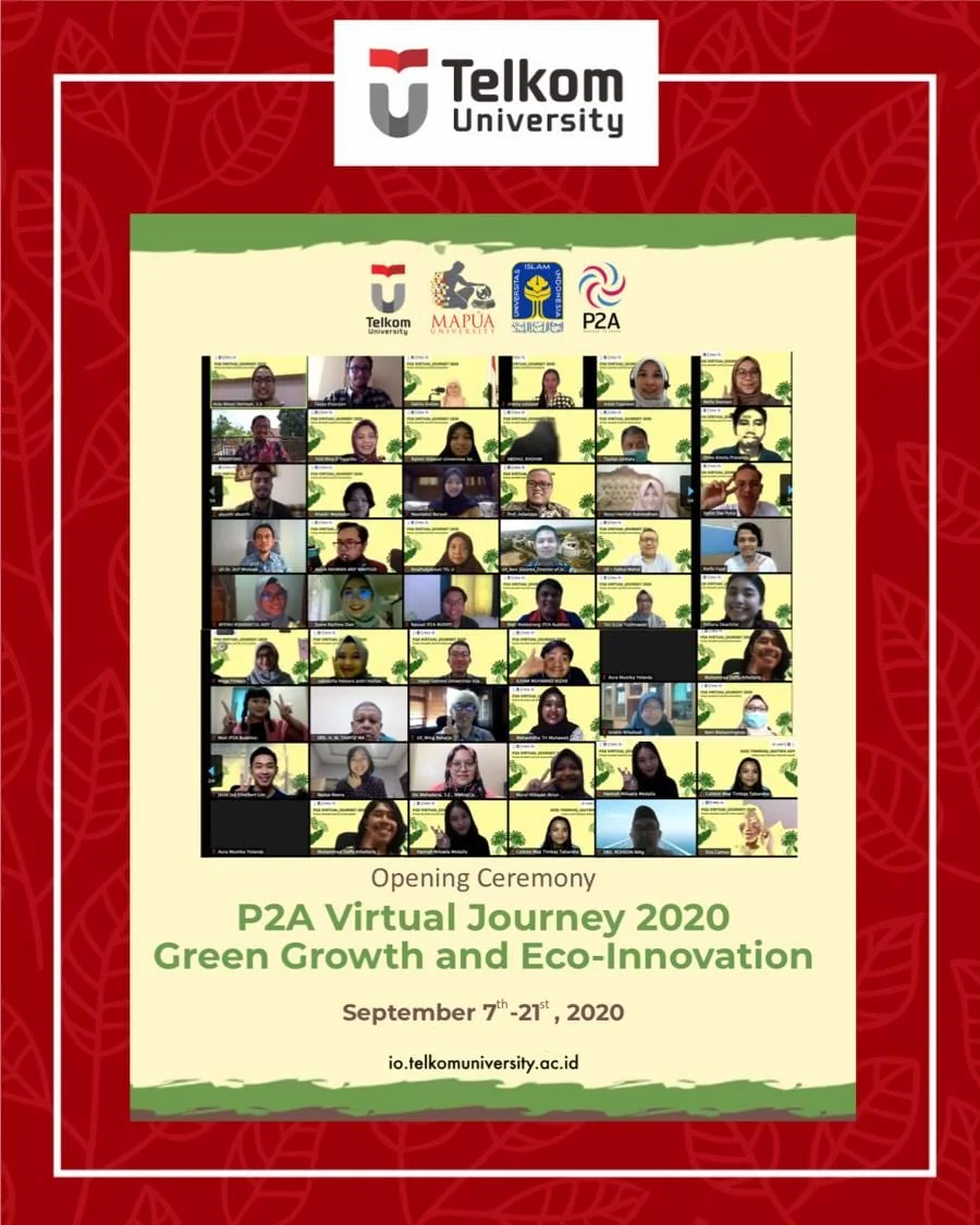 P2A Virtual Journey Opening Ceremony. Telkom University in collaboration with Universitas Islam Indonesia dan Mapua University Philippines will hold a program called Passage to ASEAN (P2A) Virtual Journey on September 3rd to 28th, 2020 under the theme “Green Growth and Eco-Innovation”. This program is held to enrich student’s school life experience, deepen student’s cross-cultural skills and global mindset, build students relationships as well as strengthen student’s global awareness. There are 50 students from the three universities as well as other universities participate in this program. They will e-exchange weekly for about one to four hours at an agreeable time and day of the week for four consecutive weeks and do a mini project as a team.